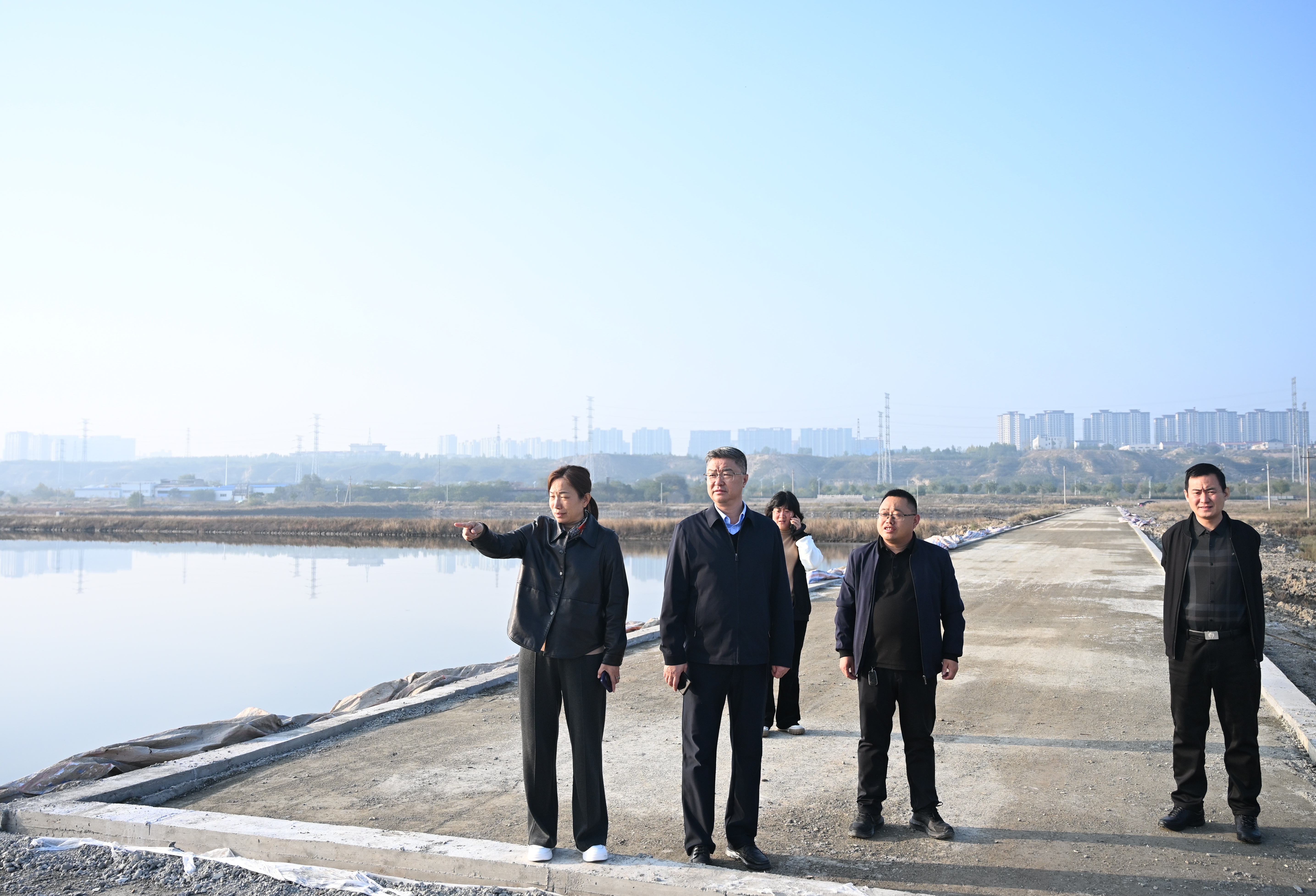薛文兵一行人來到天鵝池施工現(xiàn)場,在詳細(xì)了解項目施工進(jìn)展后,他指出,天鵝是鹽湖生態(tài)治理改善的靚麗的名片,隨著天鵝遷徙季的到來,22只天鵝和上百只白鷺的安家落戶,社會各界的關(guān)注度目前持續(xù)升高。針對景區(qū)改造和維護(hù)管理,他強(qiáng)調(diào),要科學(xué)組織施工,避開天鵝覓食、休息高峰期,最大限度降低施工干擾,加快完成天鵝池道路改造及配套設(shè)施的建設(shè),為天鵝營造適宜的棲息環(huán)境,實現(xiàn)生態(tài)棲息與工程建設(shè)的安全和諧、同頻共振。