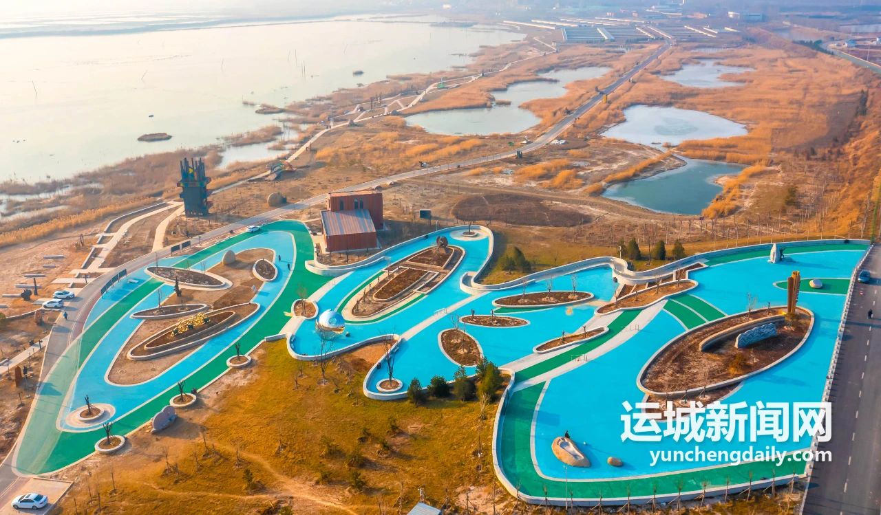 河?xùn)|成語(yǔ)典故園是運(yùn)城又一張文化旅游新名片,模樣不同凡響?!?br /> 遠(yuǎn)山近湖,連綿的中條山上,冰雪未化。池水的光芒在傍晚的暖陽(yáng)下如同一面鏡子,放眼望去,盛大的金色盛滿你的眼眸,住進(jìn)你的心里。
